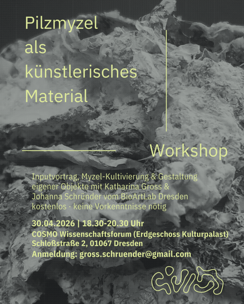 Im praktischen Teil zeigen wir, wie Pilzmyzel selbst angesetzt und kultiviert werden kann. Anschließend entwickeln die Teilnehmenden eigene Formen, befüllen diese mit Myzel und begleiten den Entstehungsprozess eines Objekts, das im Anschluss mit nach Hause genommen werden kann.